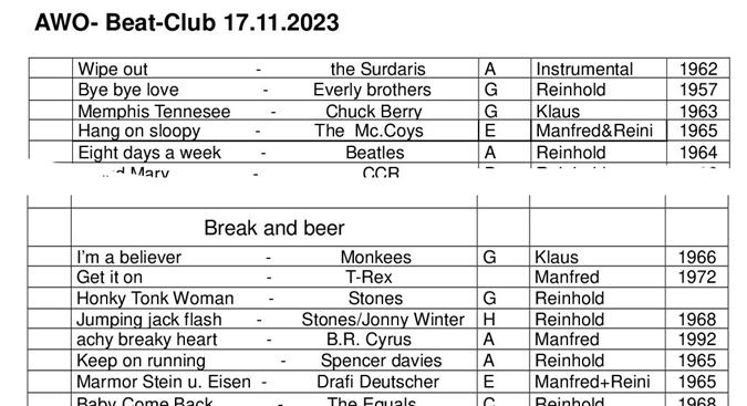---------------------------------------------------------------------------------------- AWO Beat-Club am 17.11.2023 Seit über